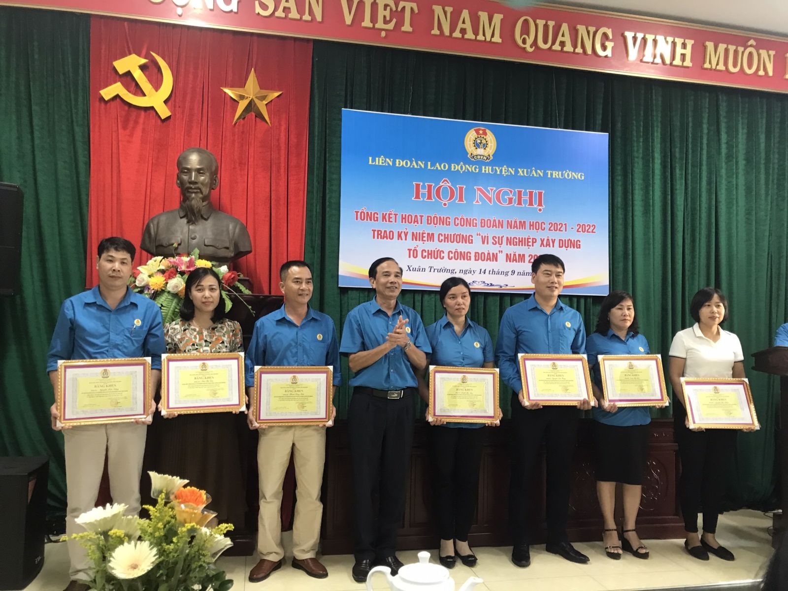 Đc Nguyễn Văn Công – Phó Chủ tịch Công đoàn trường THCS Xuân Đài nhận Bằng khen của LĐLĐ tỉnh Nam Định